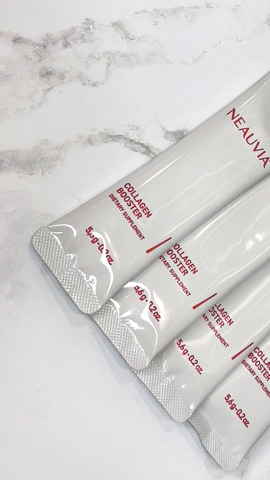 Il nostro integratore alimentare Collagen Booster contiene 5 g di peptidi di collagene di pesce provenienti da pelli e/o ossa di pesci sani d’allevamento per porzione giornaliera.